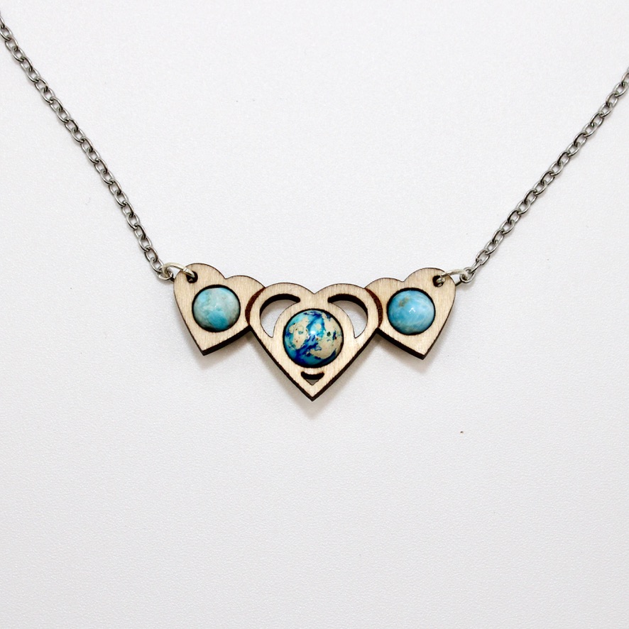 Collier Coeurs (bois clair, Jaspe et apatite)