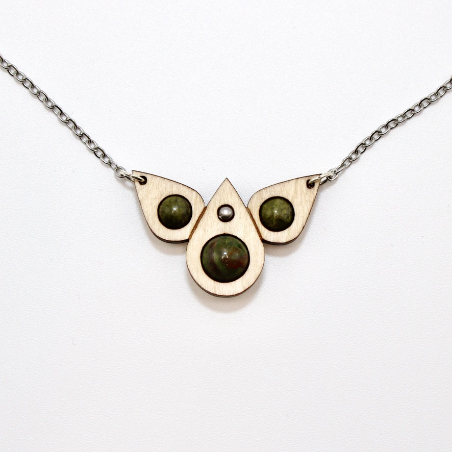Collier Gouttes (bois clair, Aventurine et Unakite)