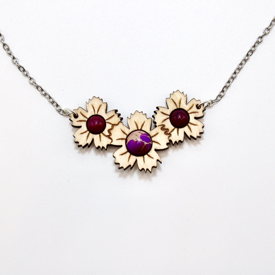 Collier Oeillets (bois clair, Jaspe rose et agate)